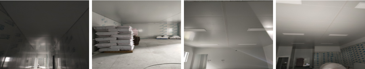 2021-7-13成都莱燚和食品有限公司三期厂房装修现场:彩钢板完成至90%,水电安装完成100%