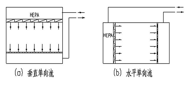 单向流(层流)洁净室,其中又分垂直单向流洁净室和水平单向流洁净室。