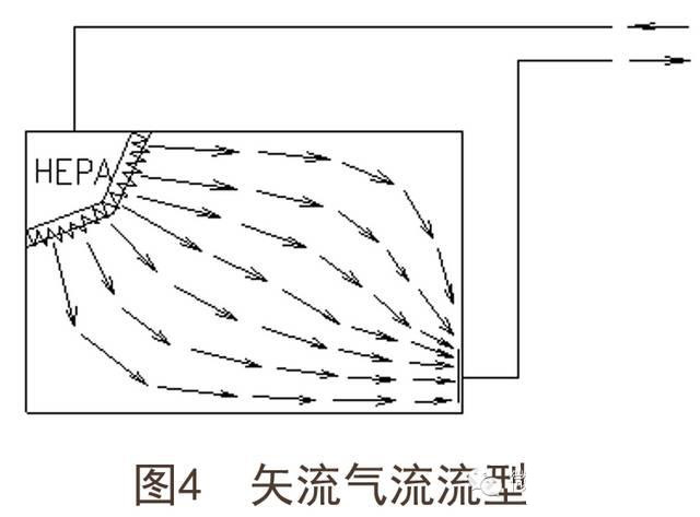 矢流洁净室的气流是以放射型的流线流出,流线之间没有竖向交叉,可用相对少量的送风获得较高级别的洁净度。多用在医药、医疗和电子等行业的小洁净室中。在某些特殊的实验室中也得到广泛的应用。