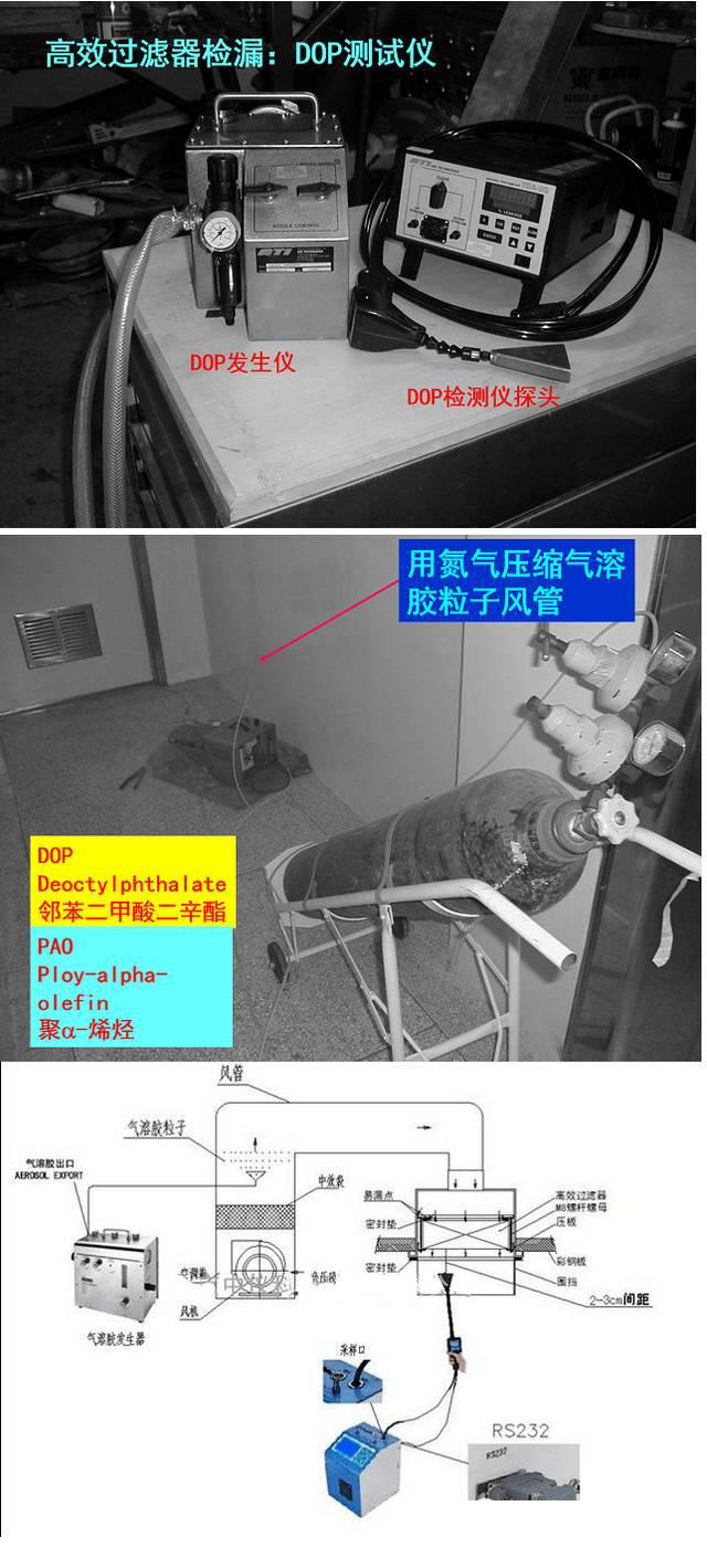 DOP(邻苯二甲酸二辛酯)气溶胶(d=0.3μm,>3500个/升) 检查过滤介质、密封垫是否有泄漏。