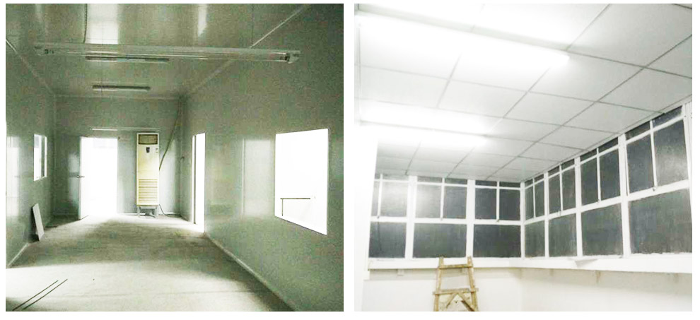 工程进展:彩钢工程完成,所有灯具、开关、插座安装完成,剩余1/2给排水以及380v动力电缆、配电箱未完成