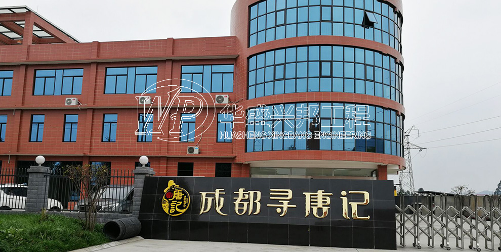 成都寻唐记食品有限公司装修工程案例,该公司经营范围:生产:膨化食品、炒货食品及坚果制品(油炸类)、糖果制品。华盛兴邦厂房设计。