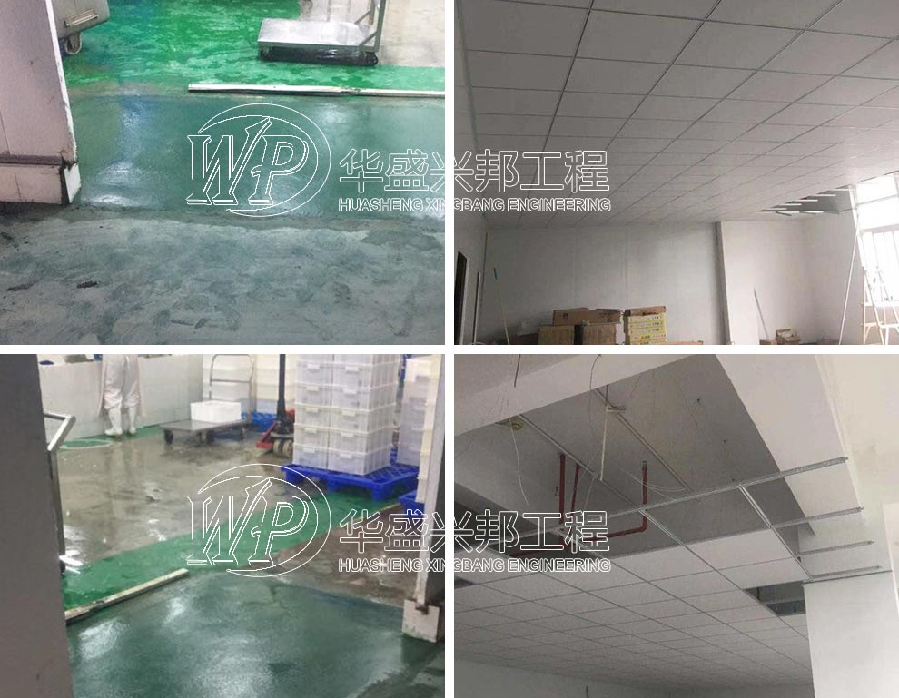 华盛兴邦工程厂房装修现场——成都光合食品有限公司厂房装修现场,地坪施工,车间吊顶。厂房设计、装修咨询热线:173-4019-3272