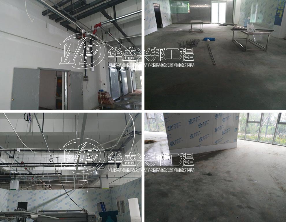 华盛兴邦工程项目装修现场——岛盛客隆食品有限公司厂房装修现场,现场吊顶。