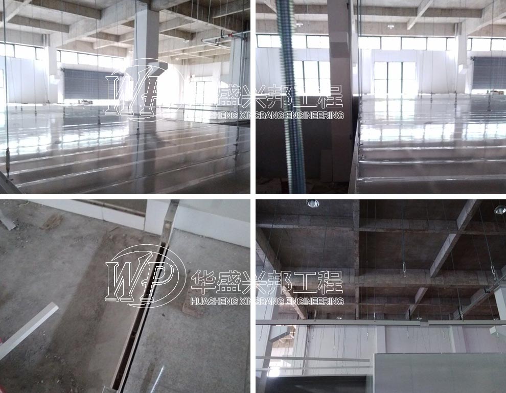 华盛兴邦工程项目施工现场——四川憨憨豆匠食品有限公司二期厂房装修现场,现场顶板施工中