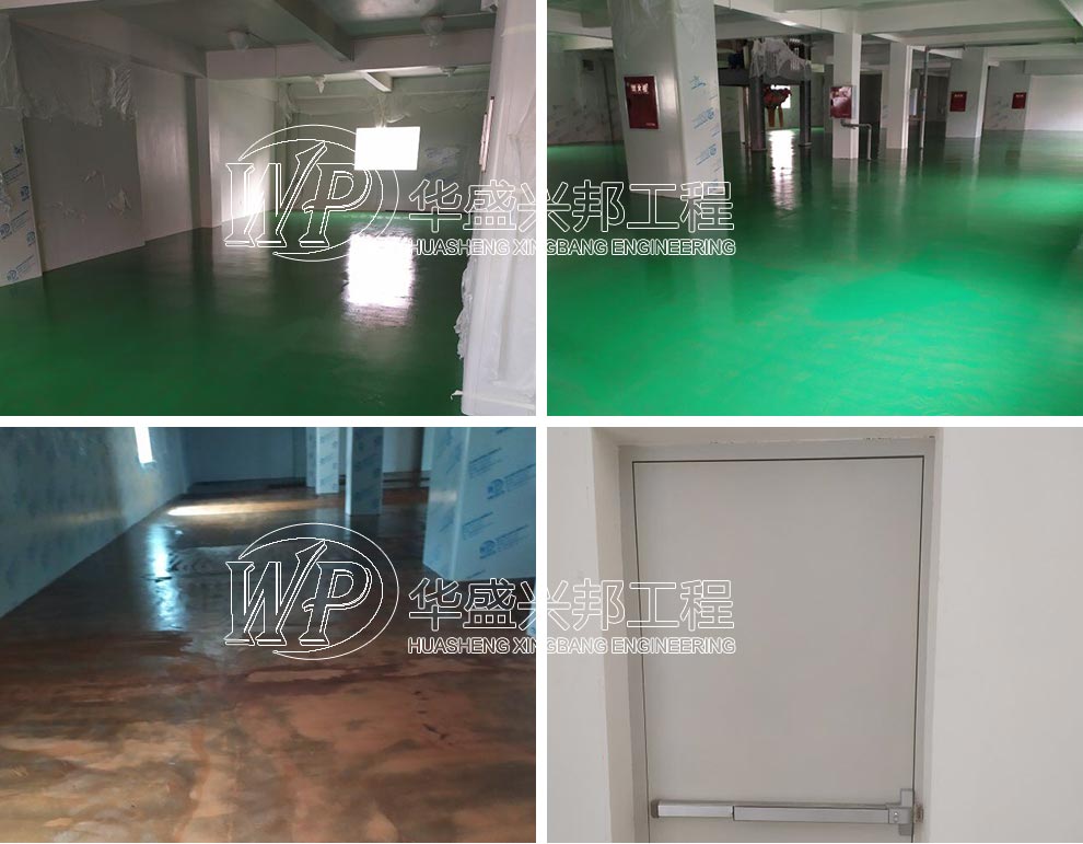 华盛兴邦厂房装修现场, 四川美料美味食品科技有限公司厂房装修施工现场,地坪施工