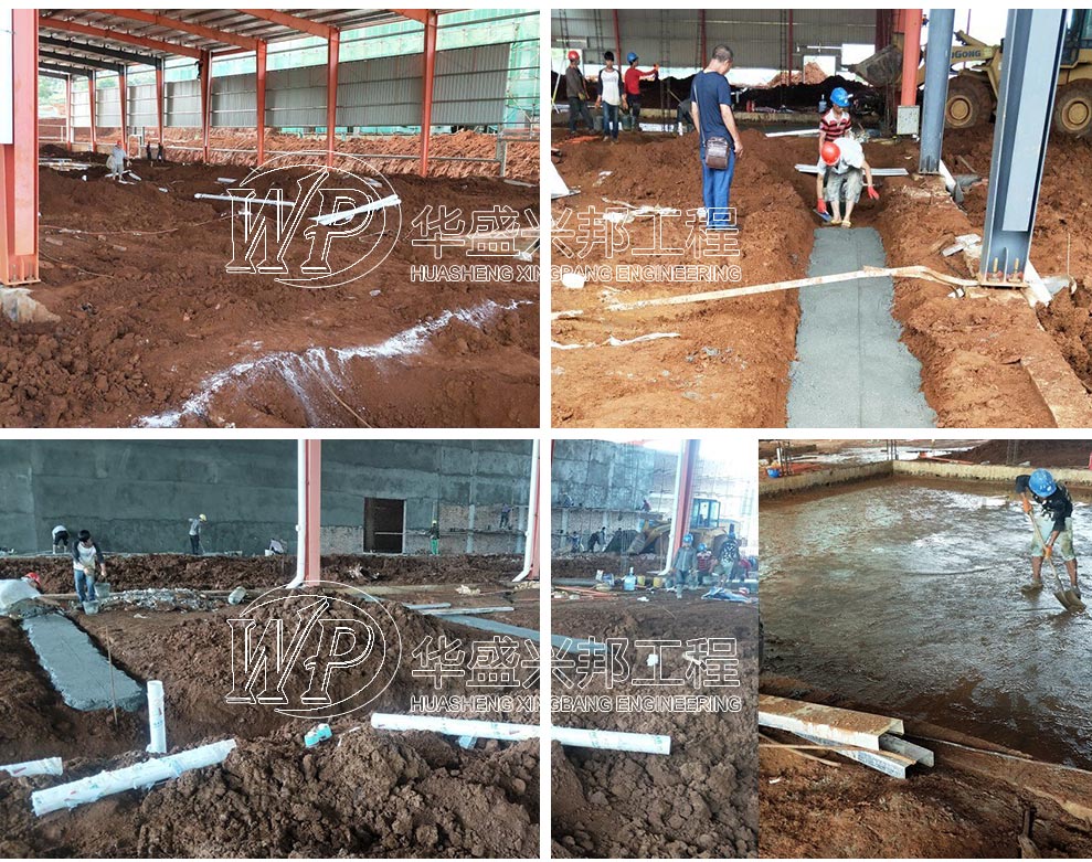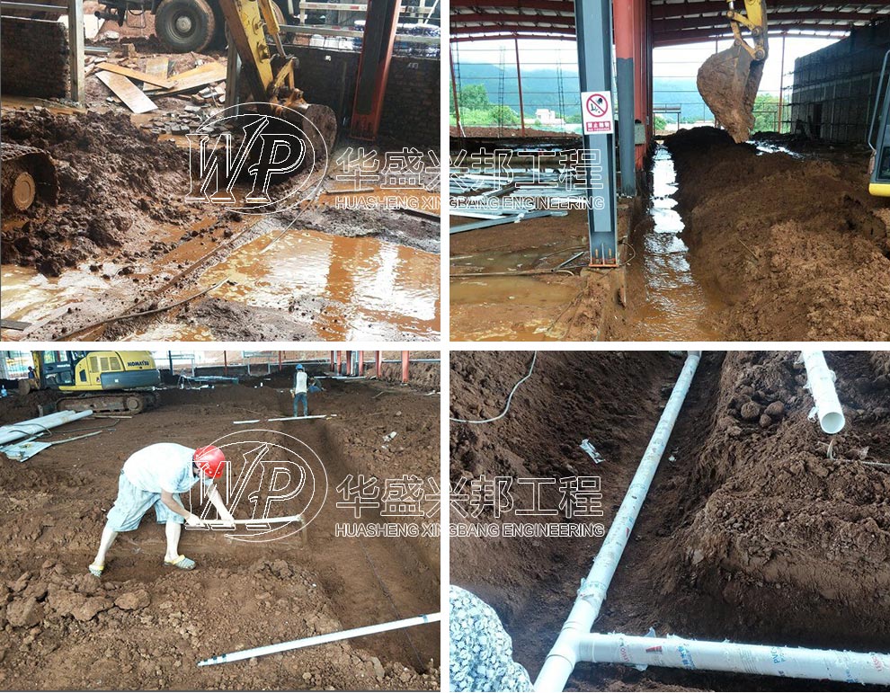 华盛兴邦厂房装修现场,瑞丽市盛达食品有限公司厂房装修施工现场,排水沟挖沟,施工,地面开始施工