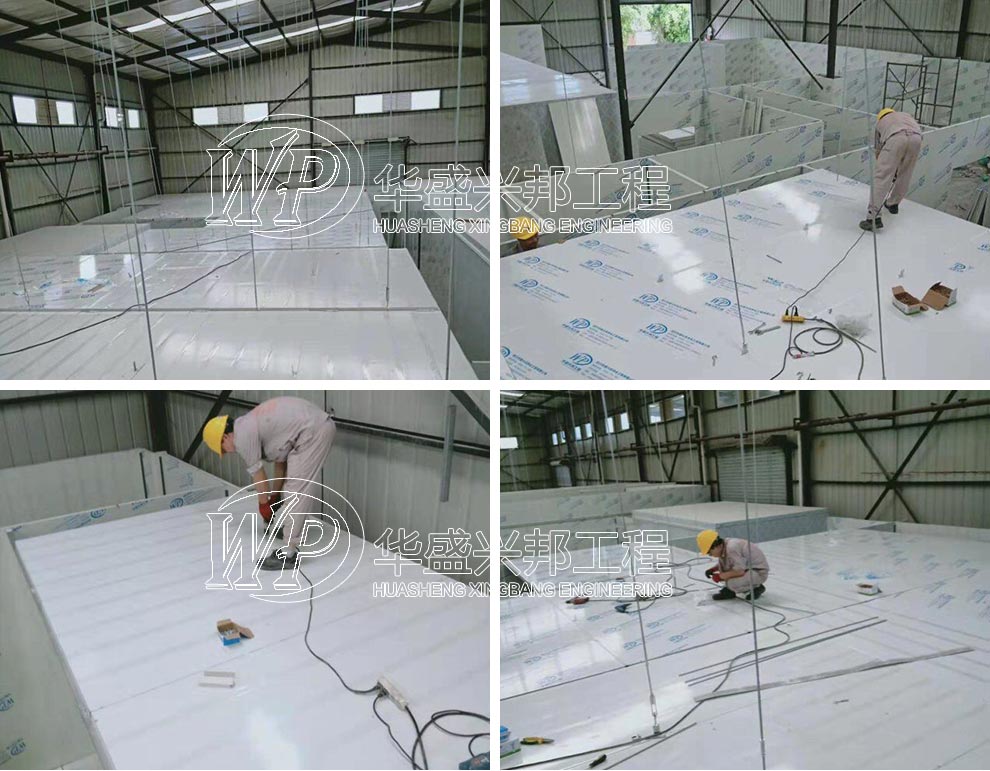 华盛兴邦厂房装修现场,成都妙仕康食品有限公司厂房装修现场,吊顶施工中