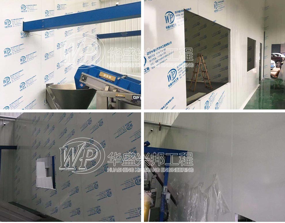 华盛兴邦厂房装修现场,四川聚峰谷农业科技开发有限公司厂房装修现场,墙板是个,门窗开洞