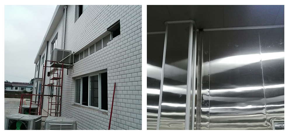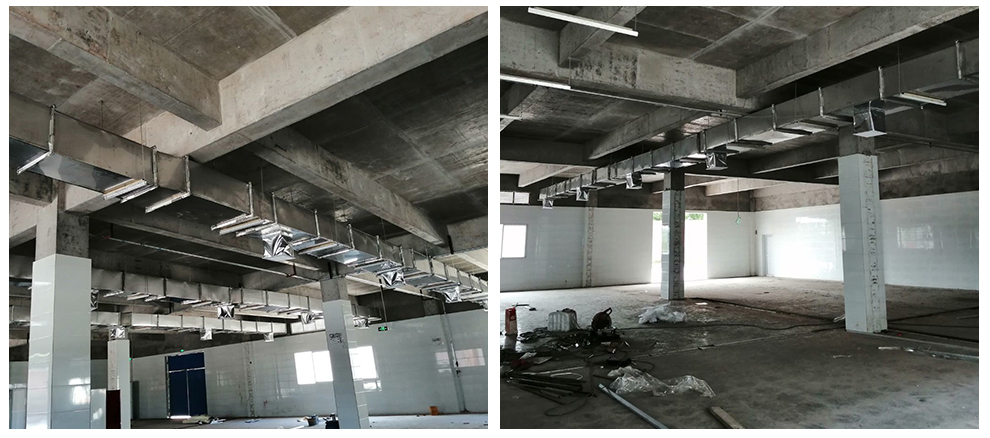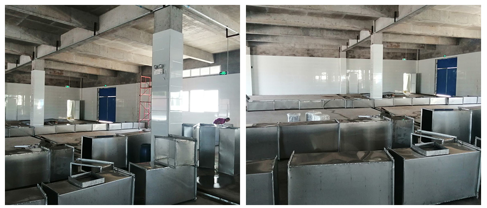 2020-01-01厂房装修现场,风管吊装,车间墙面圆弧安装2019-12-26厂房装修现场,墙体施工,风管组装2019-12-23厂房装修现场,车间隔断墙板施工2019-12-23厂房装修现场,墙面施工,线路安装,风管到场2019-12-21厂房施工现场,车间吊顶,墙板施工,线管安装2019-12-15厂房施工现场,车间开始施工,隔断墙板施工2020.5.8 通风,室外主风管开始安装,钢管开始除锈 5.14 机电安装 5.15 收尾5.25管道排风安装完成,车间风口安装连接, 5.29安装玻璃6.1车间窗户开洞制作完成,其余玻璃安装完成 6.2参观窗户安装,打胶完成,票汤间回风柱完成’’6.4票汤间收圆弧,完成撕保护膜完成三分之二 6.7 不锈钢制品到场无清单收货单6.8冷风机材料到场,人员到场开始安装 2020-6-26空调调整,给水水管测试2020-7-6泸州竹芯食品有限公司厂房装修现场,1.更衣间甲方乳胶漆完成可以安装照明电,插座 2车间,增量封门洞一个,加宽门洞一个,车间供水发现一个点位有微弱寖水需处理 3.实验室工作台安装完成,需要处理掉漆位置,和增加挡板。 2020-7-16泸州竹芯食品有限公司厂房装修现场,不锈钢设备安装完成