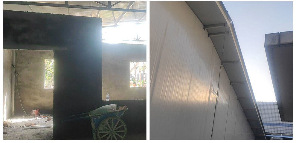 2020-6-28 四川 春之源食品有限公司厂房装修厂房装修现场,墙板完成百分之八十 锅炉房门洞封闭完成