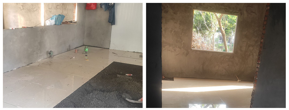 2020.4.15 1.挡水墙抹灰完成50% 2.厨房混凝土前期工作完成