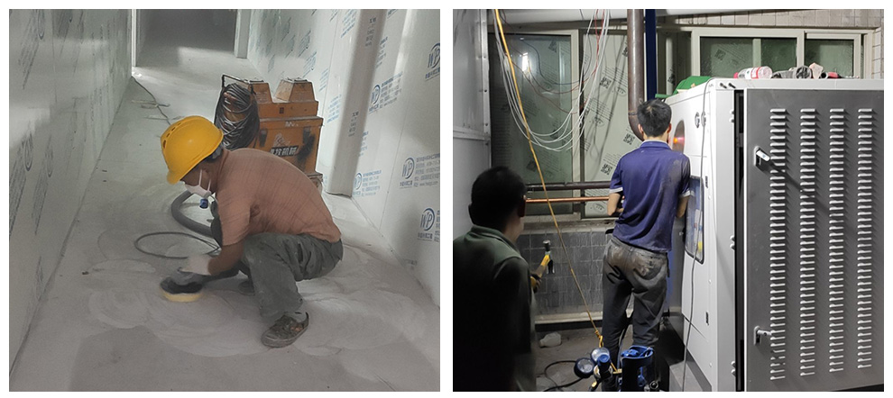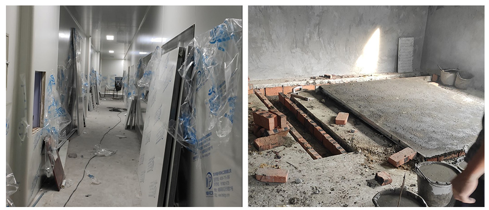 5.23地坪切缝完成 冻库安装调试