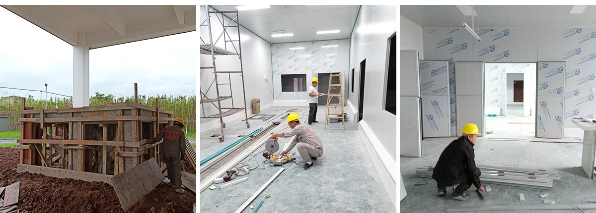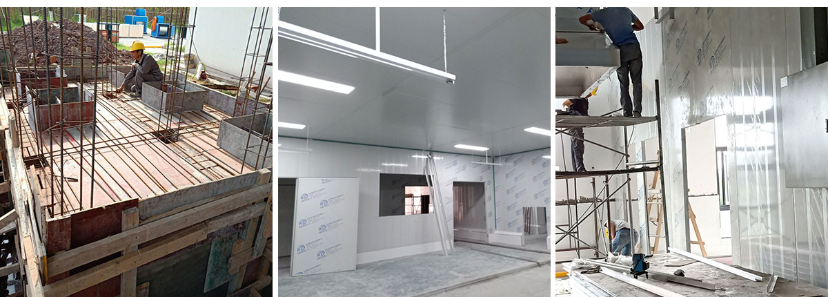 2020-8-20四川兵哥哥食品有限公司厂房装修现场,车间隔断净化板施工