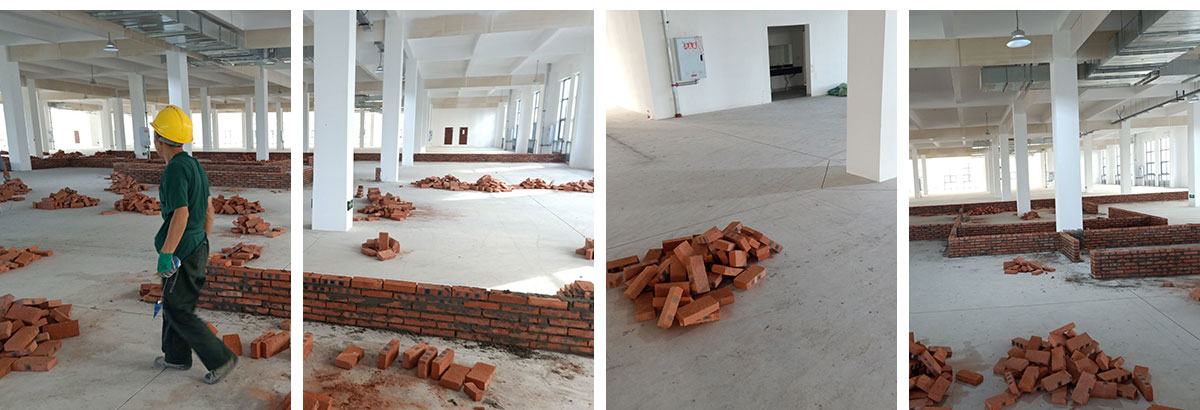2020-6-30四川兵哥哥食品有限公司厂房装修正式动工,现场放线,水泥、墙砖到现场