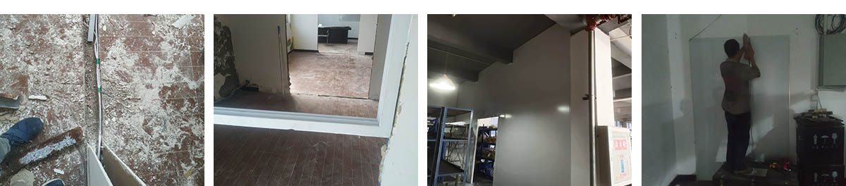 2020-7-05成都波辐科技有限公司厂房施工现场,1.门安装完成,挡鼠板安装完成,彩钢收尾结束。2.照明灯换气扇安装完成95%,紫外线灯安装完成,插座安装完成。2020-6-30成都波辐科技有限公司厂房施工现场,1.增项墙体拆除完成,窗帘盒安装完成。2.彩钢立板安装,门框料预制完成,门框安装完成50%,撕膜完成,打胶完成25%,塑料底座安装完成40%,圆弧安装完成20%。2020-6-27成都波辐科技有限公司厂房施工现场,1.彩钢材料到场卸货搬运至车间内部。2.放线完成30%,地槽安装完成30%,墙板安装完成15%。3.插座移位置改线完成。4.墙面抗裂砂浆修补完成。2020-6-26成都波辐科技有限公司厂房施工现场,暗埋排水管和给水管地面恢复完成;门洞开洞完成;靠外墙内侧墙面铲除完成,刷界面剂完成。2020-6-25成都波辐科技有限公司厂房施工现场,排水管开槽完成,给水管和排水暗埋部分管敷设完成。