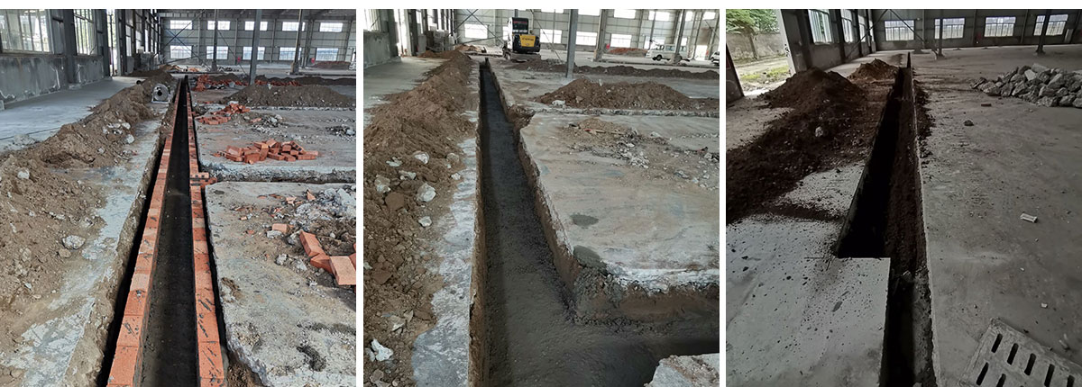 2020-7-27四川怡味农业科技发展有限公司厂房装修现场,1、排水沟垫层养护; 2、排水沟砌筑完成40%; 3、场地清理。