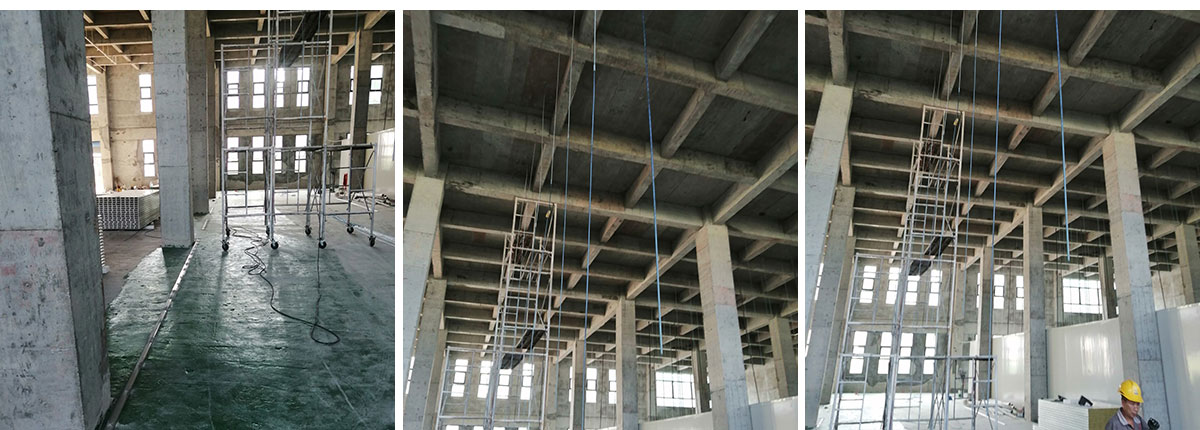 四川颐民医疗器械有限公司二期厂房装修现场:1.卸货,放线完成,打地槽完成 2.吊筋制作完成,开始施工安装