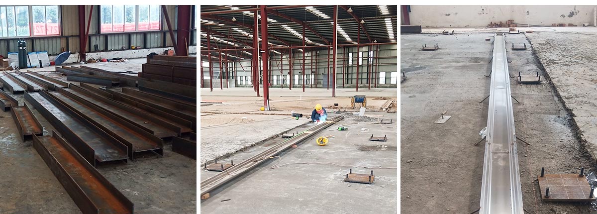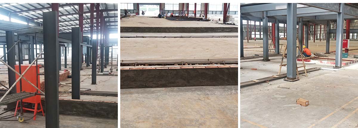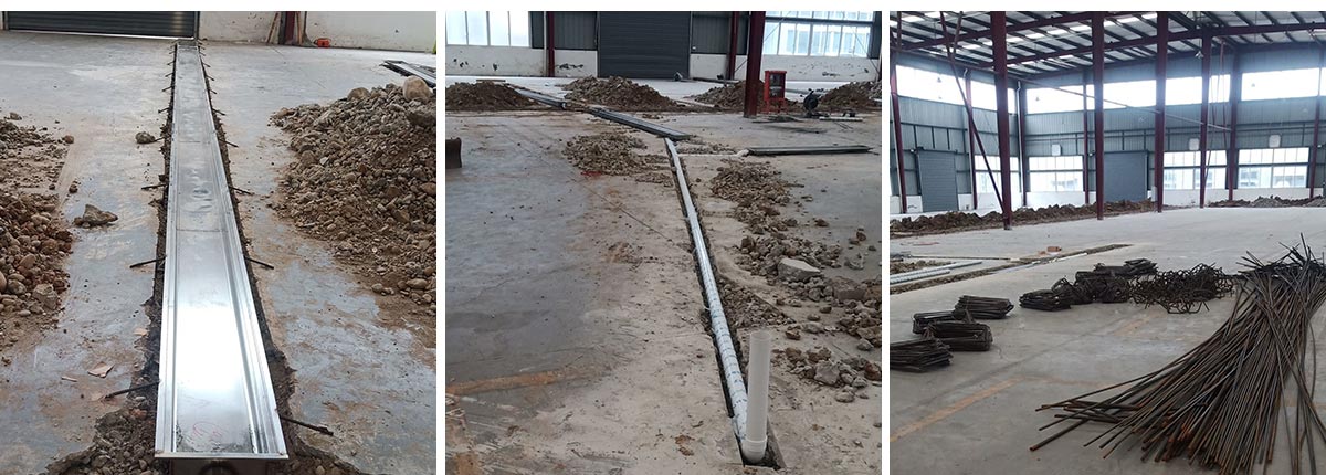 2020-10-18 成都膳舍食品有限公司厂房施工现场:不锈钢排水沟安装完成,钢柱、钢梁制作