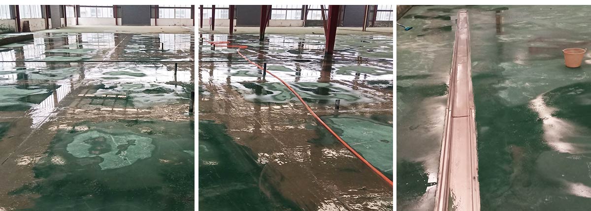 2020-12-02 成都膳舍食品有限公司厂房施工现场:地坪收缩缝切割完成,不锈钢排水沟清洗完成,地面养护