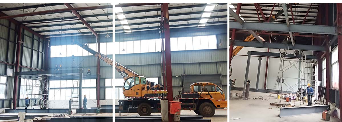 2020-10-30 成都膳舍食品有限公司厂房施工现场:办公区钢梁、钢柱吊装
