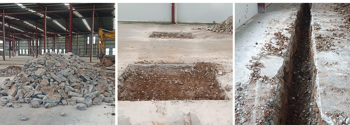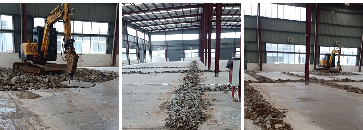 2020-9-24 成都膳舍食品有限公司厂房施工现场:排水沟切缝,破碎开挖施工