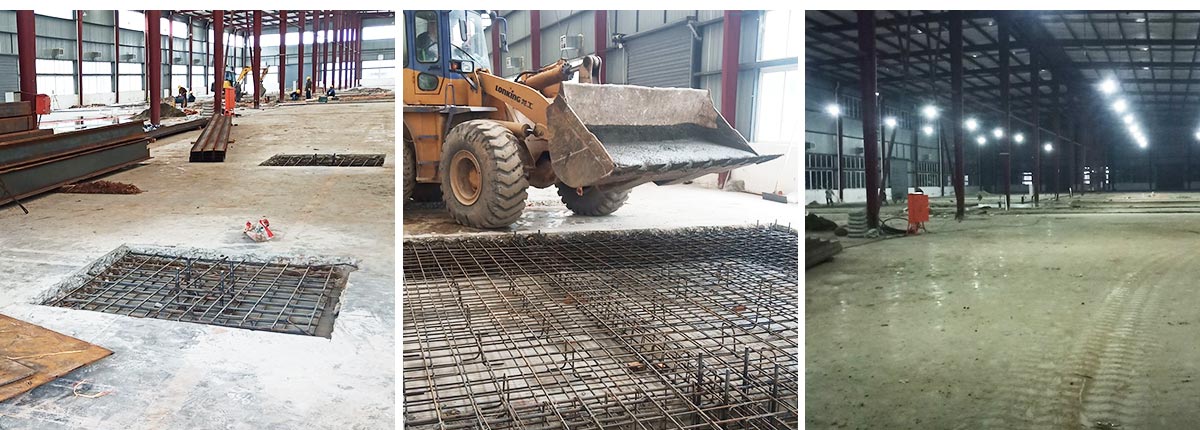 2020-10-15 成都膳舍食品有限公司厂房施工现场:钢结构材料进场,开始制作,平台基础混泥土浇筑