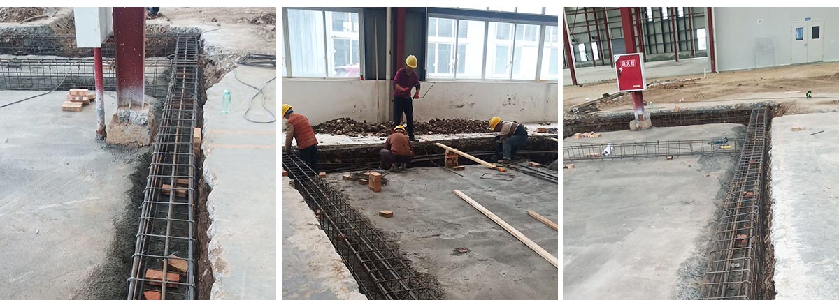 2020-11-27 成都膳舍食品有限公司厂房施工现场:地面找平打点,办公区槽钢焊接,角钢除锈刷防锈漆