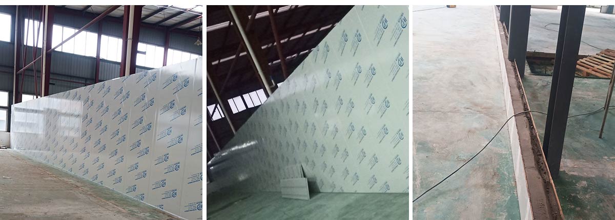 2020-12-30 成都膳舍食品有限公司厂房施工现场:彩钢板完成70%,固化地面完成95%,挡水墙斜坡完成80%,脚踏池防水完成,顶板完成15%,钢结构完成100%