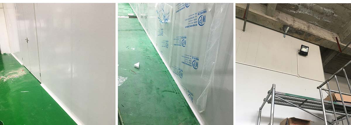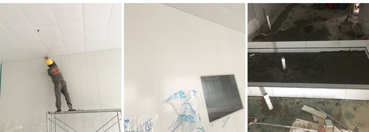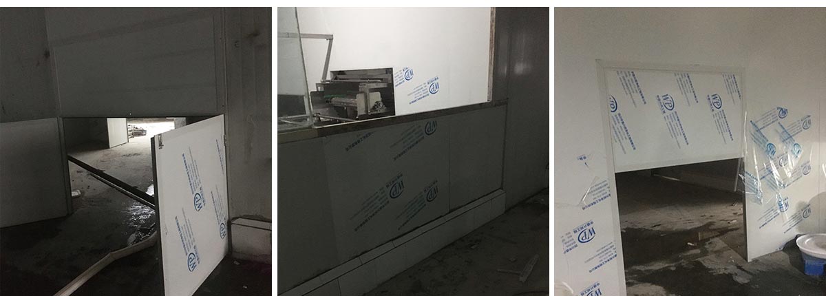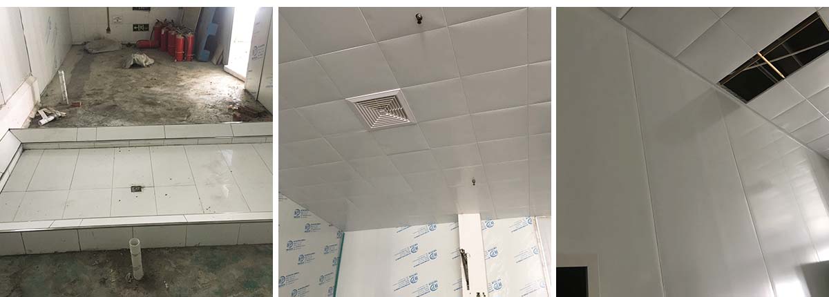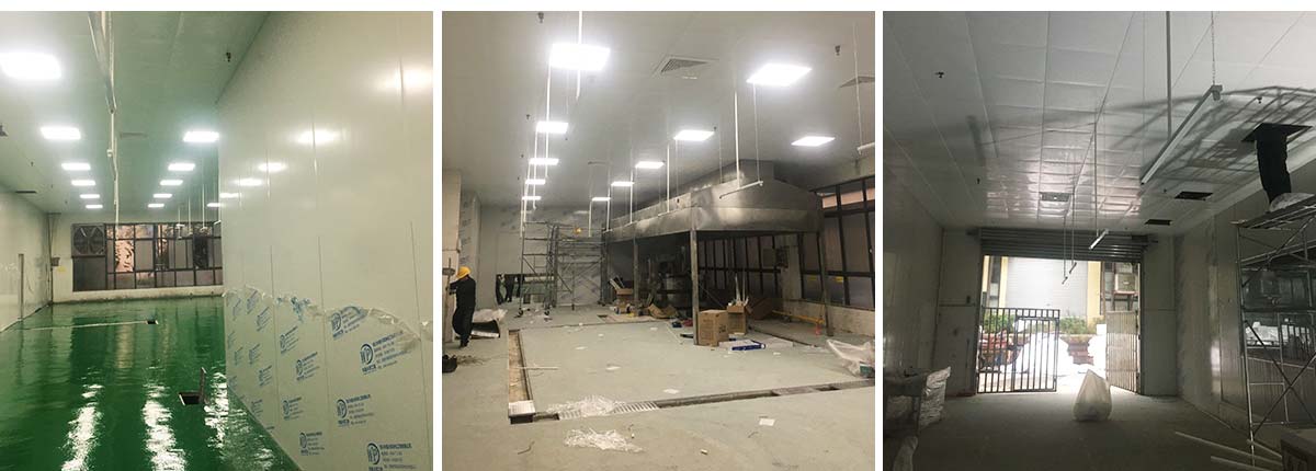2020-11-13四川雅乐鲜调味品有限公司 厂房装修现场:排水沟边恢复完成100%土建原有柱子瓷砖破碎恢复100%彩钢墙板完成100%原有土建墙开门洞及恢复完成100%,门、窗完成100%,水、电完成90%收尾完成量,撕膜、打密封胶,完成90%