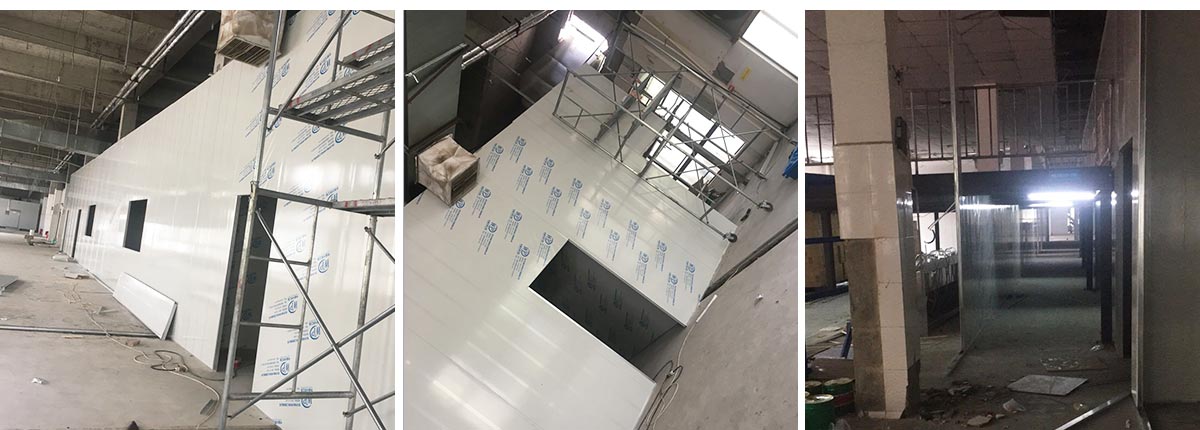 2020-9-28四川雅乐鲜调味品有限公司 厂房装修现场:排水沟边恢复完成20%,土建原有柱子瓷砖破碎恢复90%,彩钢墙板完成50%,原有土建墙开门洞完成60%,门施工