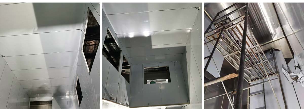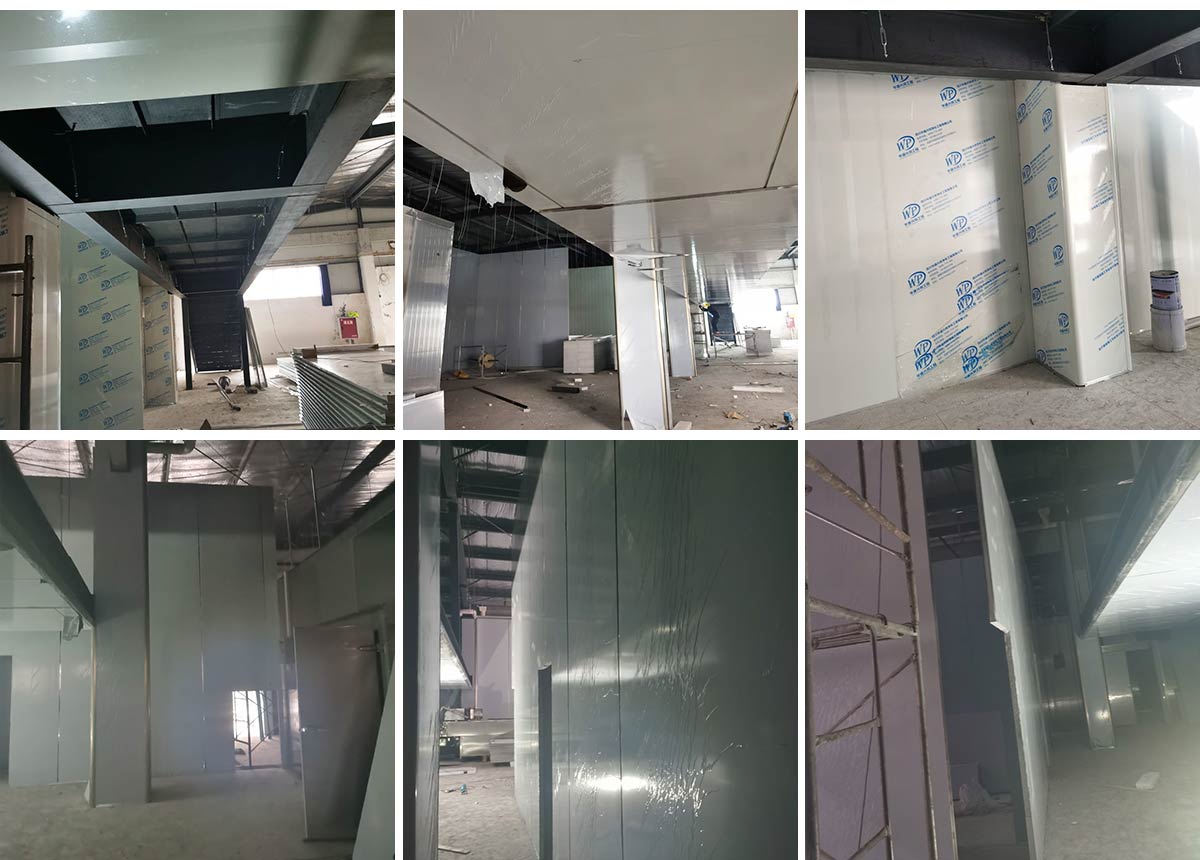 2021-01-04 四川九升食品有限公司厂房装修现场:①钢接构完成100%②冻库完成100%③彩钢墙板完成100%④彩钢吊顶完成10%