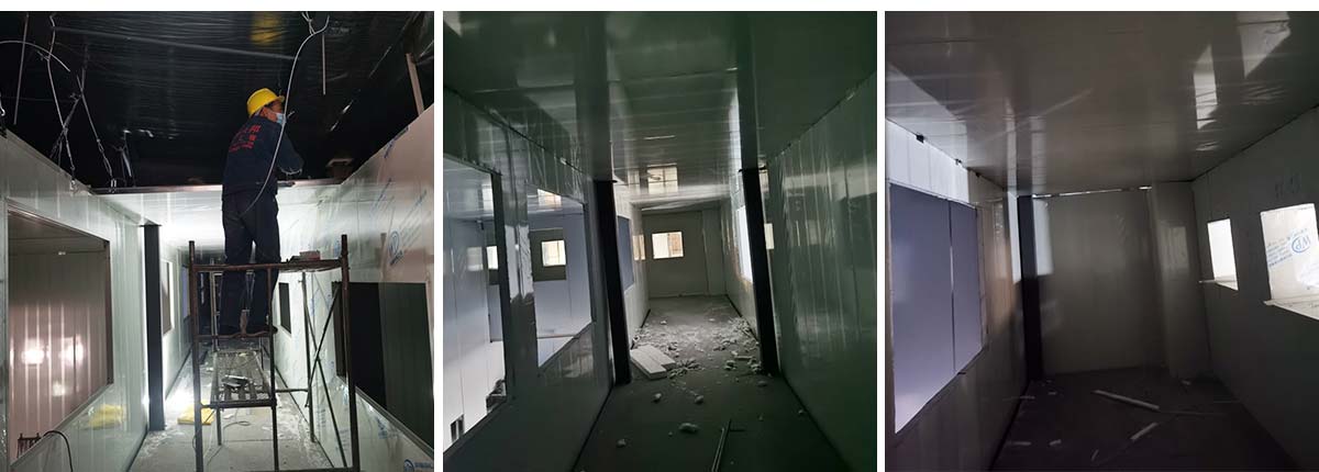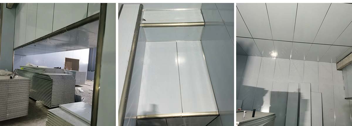 2020-12-16 四川九升食品有限公司厂房装修现场:净化彩钢板隔断施工,柱体施工