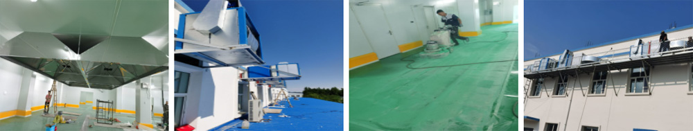2021-6-24 内蒙古科沁万佳食品有限公司厂房施工现场:① 彩钢墙板完成100% ② 彩钢顶板完成100% ③ 门 窗 制作及安装完成100% ④ 聚氨酯地坪漆完成100% ⑤ 彩钢板收尾工作完成100% ⑥ 电安装完成100% ⑦ 三防板吊顶安装完成100% ⑧ 空调机组安装完成100% ⑨ 烟罩 风管 制作及安装完成100%