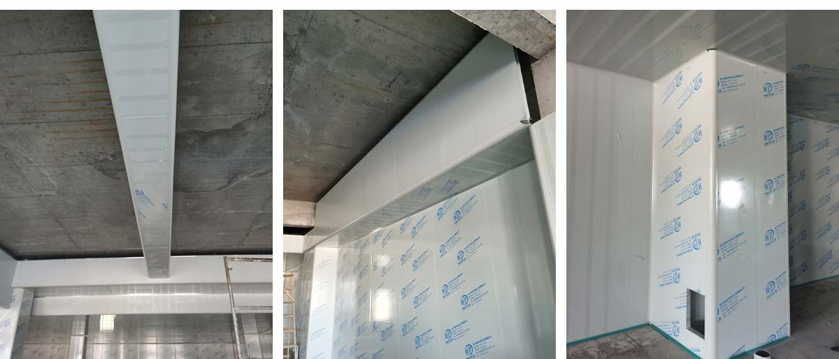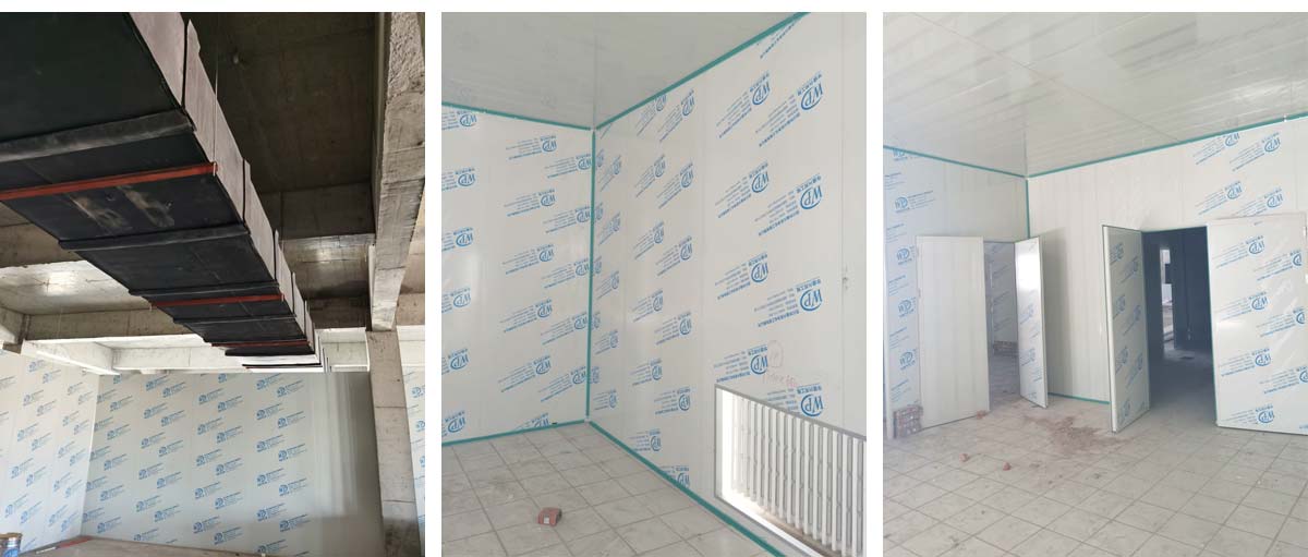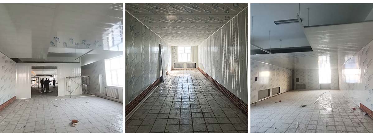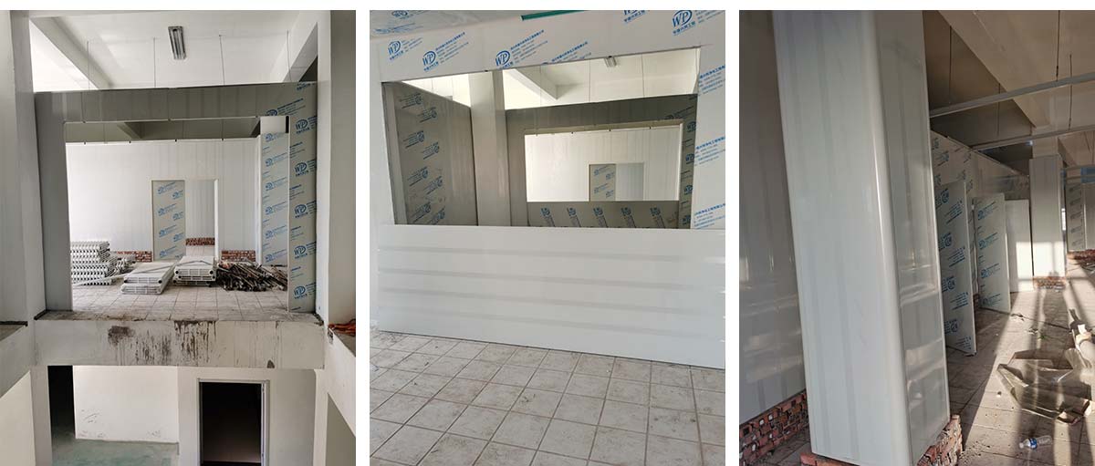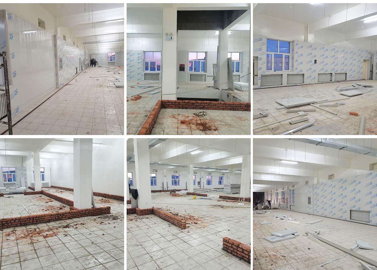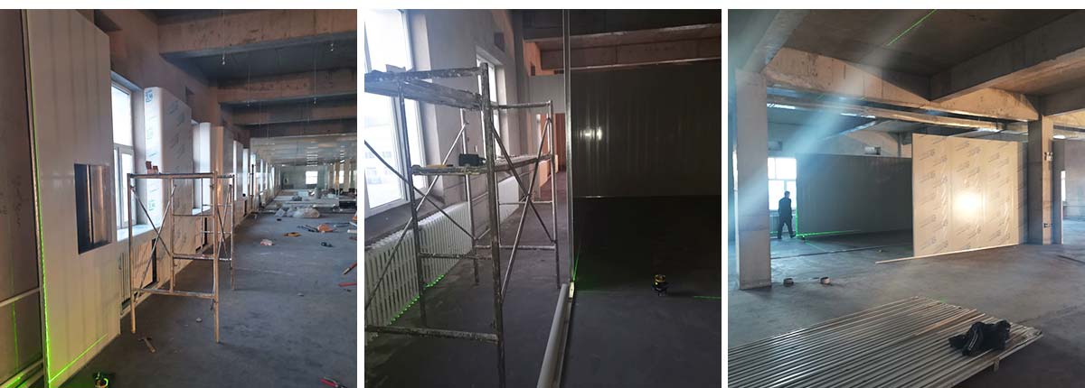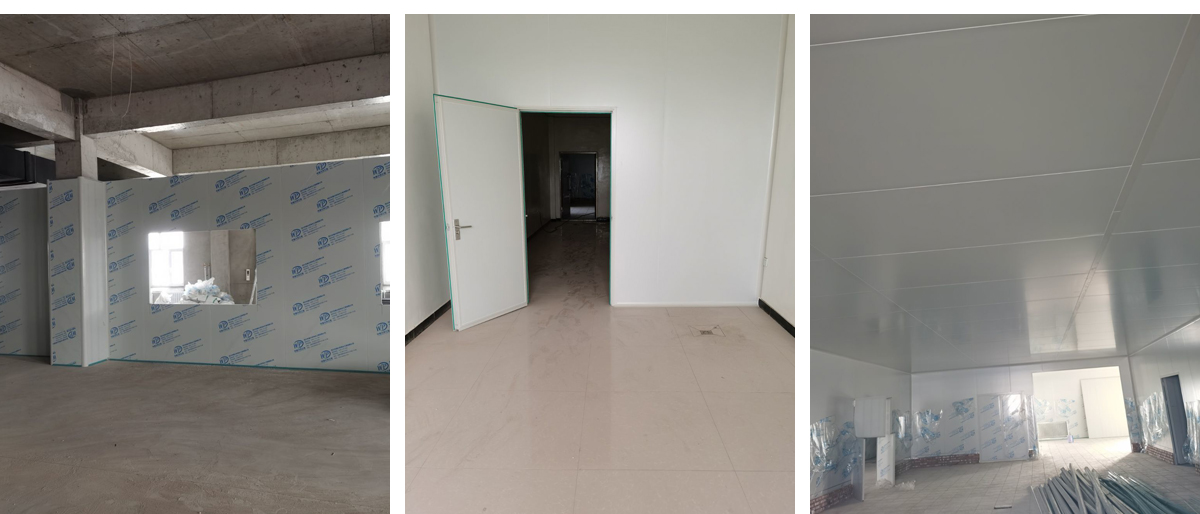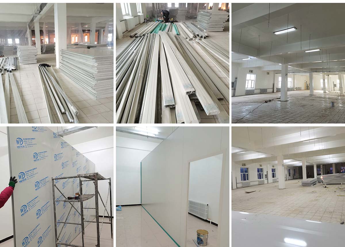 2021-01-23 内蒙古科沁万佳食品有限公司厂房施工现场,净化彩钢板隔断施工