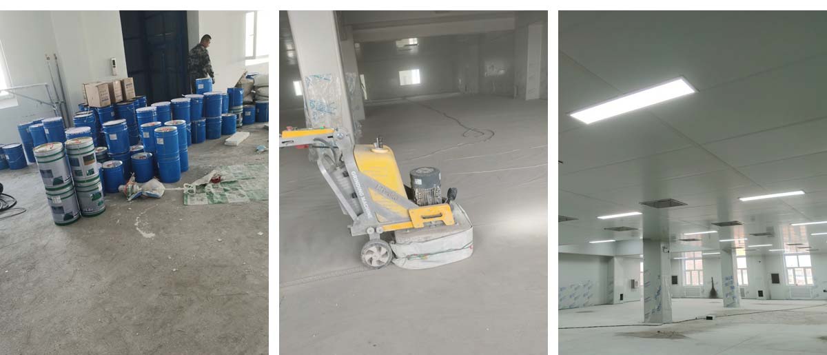 2021-4-25 内蒙古科沁万佳食品有限公司厂房施工现场:1.彩钢吊顶完成95% ;2.彩钢门窗装制作完成100%;3.10万级风管主管安装完成90% ;4.彩钢板收尾工作完成65% ;5.电安装完成100%;6.三防板吊顶安装完成100%;7.环氧地坪完成40%。