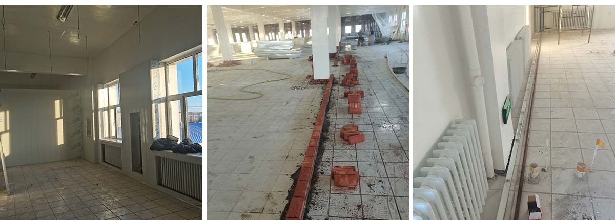 2021-01-13 内蒙古科沁万佳食品有限公司厂房施工现场,隔断施工,暖气管道施工