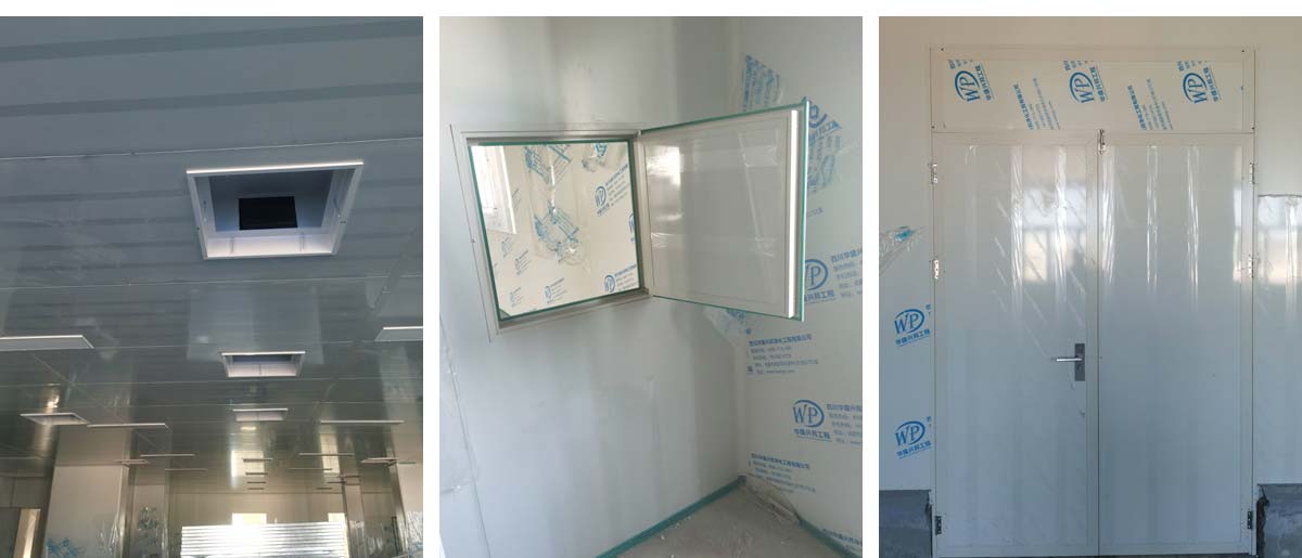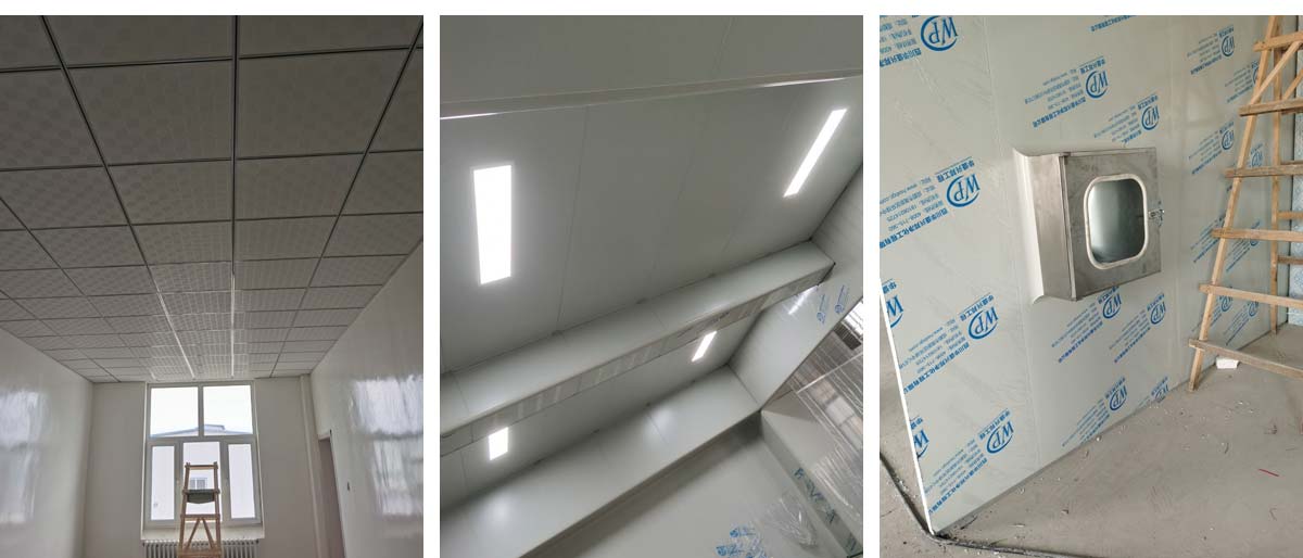 2021-4-11内蒙古科沁万佳食品有限公司厂房施工现场:1.彩钢吊顶完成95%; 2.彩钢门制作下料完成85%,传递窗安装1;3.10万级风管主管安装完成85% ;4.彩钢板收尾工作完成45% ;5.电安装完成40%; 6.三防板吊顶安装完成10%。
