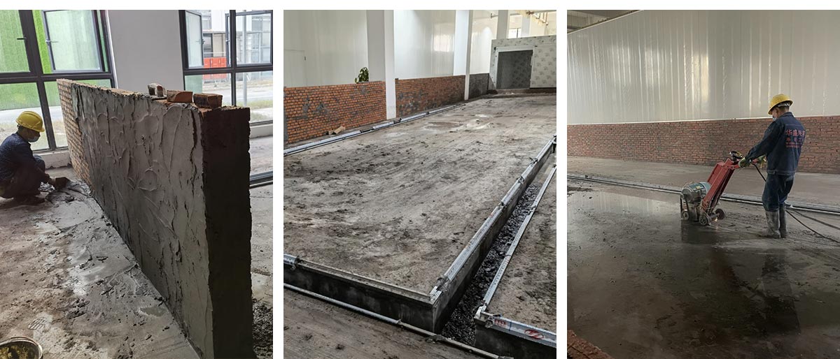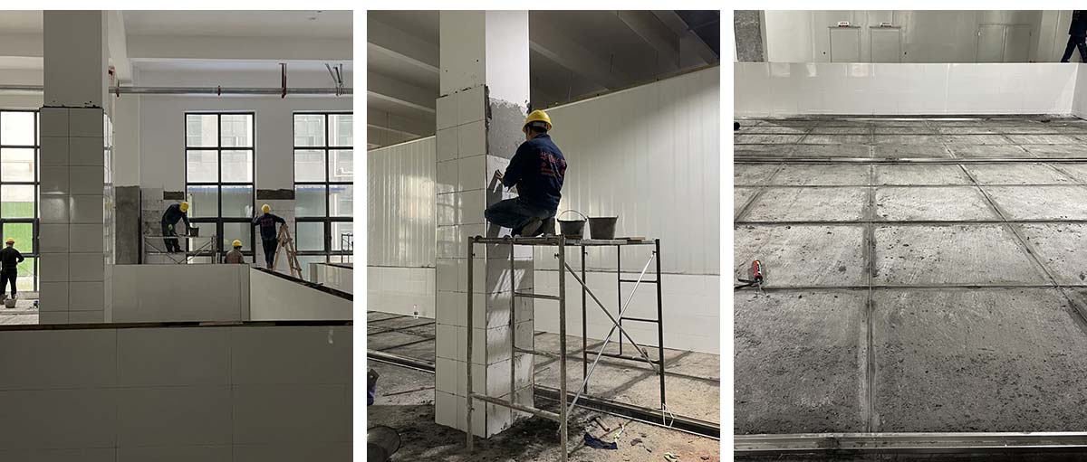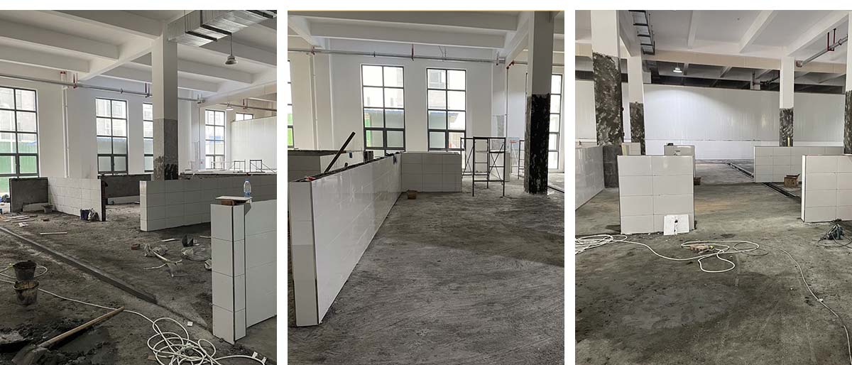 2021-4-10四川鲜美滋食品有限公司厂房装修现场:1、污水处理池墙体完成百分之四十;2、固化区域顶板完成百分之百;3、水箱焊接完成百分之十。2021-4-3四川鲜美滋食品有限公司厂房装修现场:1、固化区域墙板完成百分之百; 2、蹲便器安装贴砖完成; 3、门窗完成百分之八十;4、 污水处理池清理。2021-3-29四川鲜美滋食品有限公司厂房装修现场:2021-3-7四川鲜美滋食品有限公司厂房装修现场:1瓷砖贴砖 2水磨石装铺施工2021-3-4四川鲜美滋食品有限公司厂房装修现场:挡水墙瓷砖完成90%2021-3-2 四川鲜美滋食品有限公司厂房装修现场:1. 挡水墙防水涂抹。2.水磨石垫层完成。3.冻库金刚砂地坪完成2021-02-21 四川鲜美滋食品有限公司厂房装修现场:1、挡水墙抹灰完成百分之30。 2、水磨石地面抓毛完成百分之35。