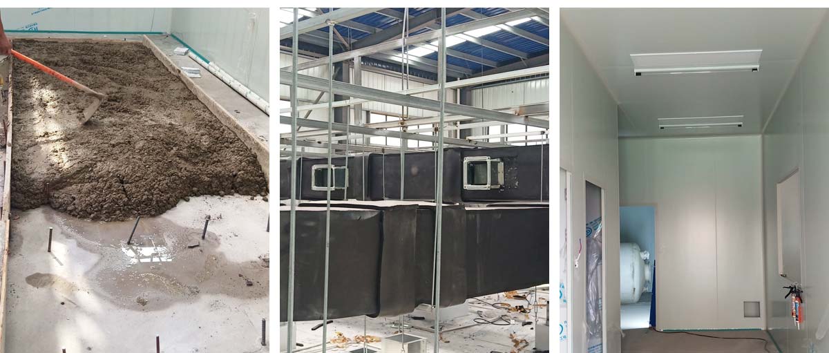 2021-4-18 四川鑫盛源化工有限公司厂房装修现场:1、环氧树脂施工完成100%2021-4-13 四川鑫盛源化工有限公司厂房装修现场:1、风管完成80%;2、彩钢完成95%;3、净化设备基础完成;4、环氧自流平地面打磨。2021-3-21 四川鑫盛源化工有限公司厂房装修现场: 矩管网架焊接、安装完成70%,外墙门洞完成80%,排水管安装完成