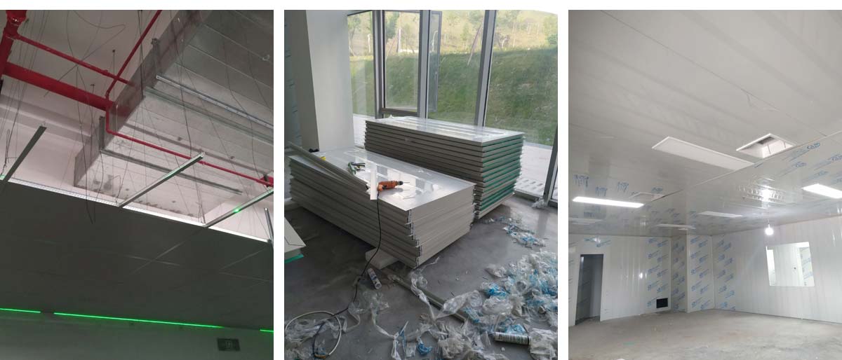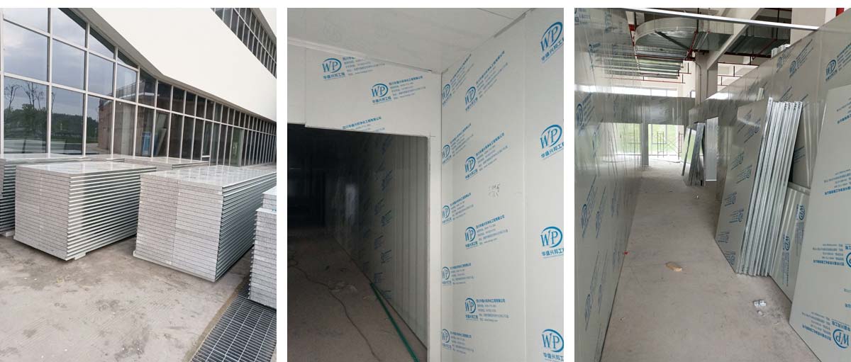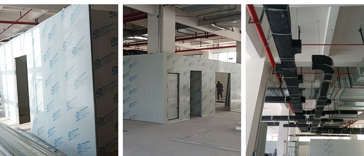 2021-5-16 资阳护家卫士湿巾项目厂房装修现场:风管安装完成,铜管焊接完成,铜管保温完成,环氧自流平地坪施工完成。2021-5-11 资阳护家卫士湿巾项目厂房装修现场:1:撕膜打胶完成约85%;2:传递窗安逸完成,空调机组组装完成;3:开关插座面板安装完成,观察窗安装完成;4:风管支管安装完成20%。2021-5-9 资阳护家卫士湿巾项目厂房装修现场:1:撕膜完成60%,打胶完成50%,静压箱送风口开孔完成,回风柱阀门开孔完成;2:开关插座配管穿线完成90%,灭蝇灯安装完成,空调基础焊接完成。2021-4-28 资阳护家卫士湿巾项目厂房装修现场:灯具安装完成60%,窗户和安全窗开洞完成,窗料预制完成。2021-4-22 资阳护家卫士湿巾项目厂房装修现场:固化地坪区域上固化剂完成,开始细磨;净化顶板安装完成约80%,圆弧安装完成约25%,门料预制完成90%。2021-4-14 资阳护家卫士湿巾项目厂房装修现场:1.立板完成100%;2.顶板完成30%。2021-3-30资阳护家卫士湿巾项目厂房装修现场:1:主风管完成80%; 2:墙板完成30%。2021-3-26资阳护家卫士湿巾项目厂房装修现场:风管到场卸货,板材进场,风管安装完成20%。