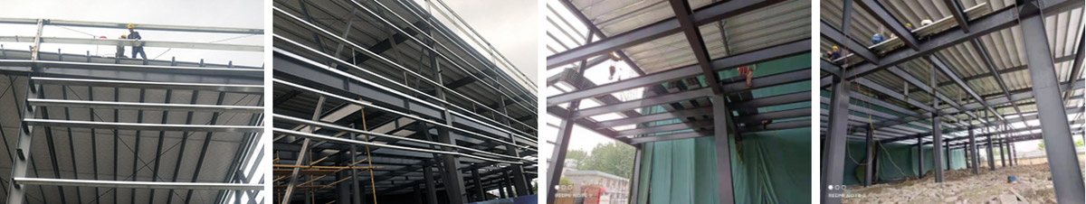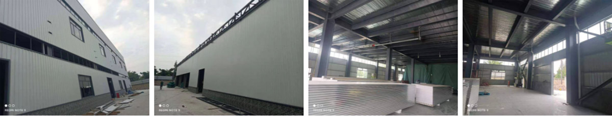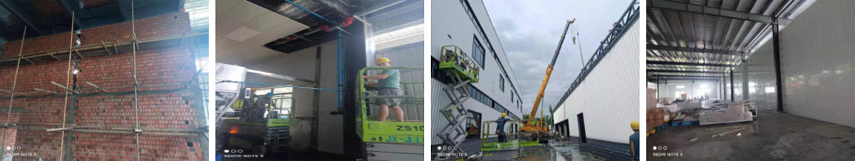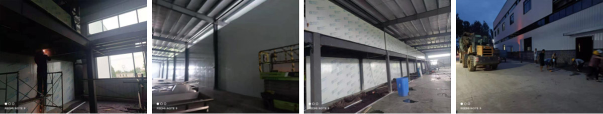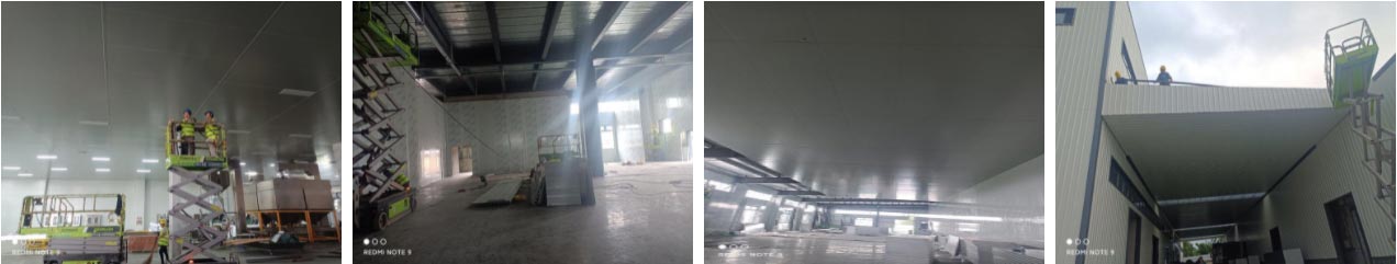2021-8-19如实香料年净选产能8000吨技改项目土建工程二期施工现场:彩钢板施工,两个厂房连接部分顶板施工