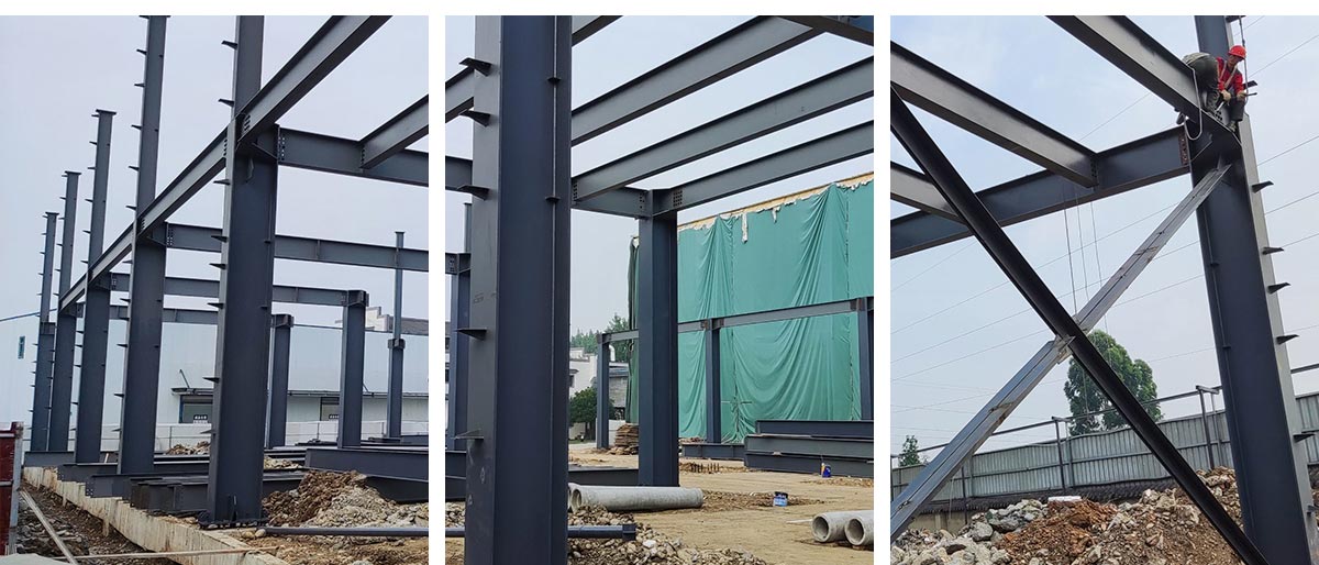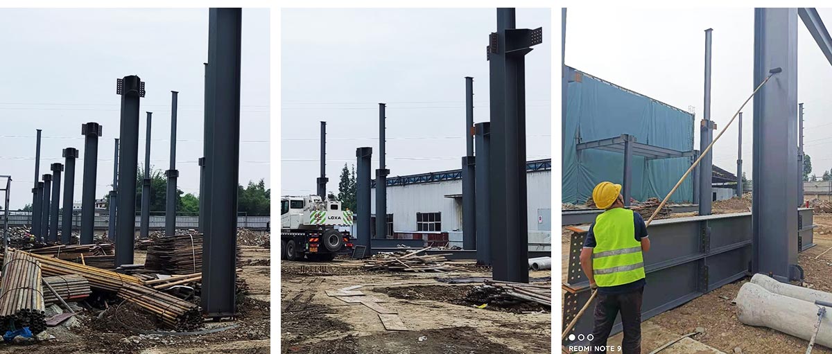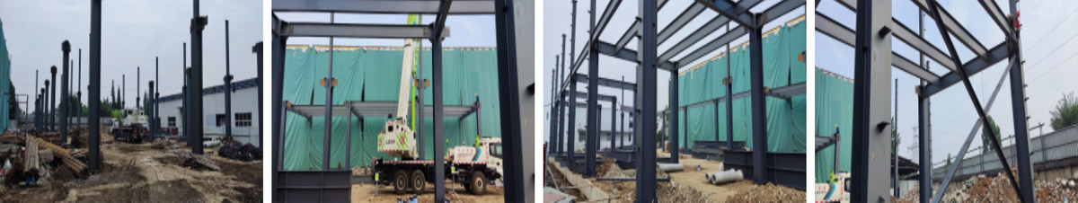 2021-6-15 如实香料年净选产能8000吨技改项目土建工程二期施工现场:主体钢构施工