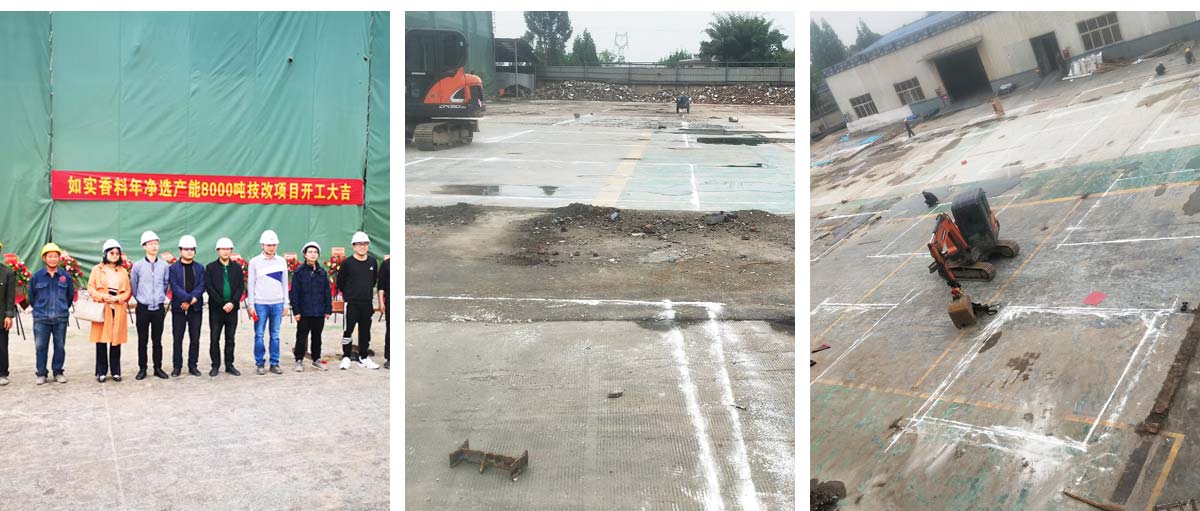 2021-4-17 如实香料年净选产能8000吨技改项目二期厂房土建工程施工现场:二期项目正式开工,地基放线。