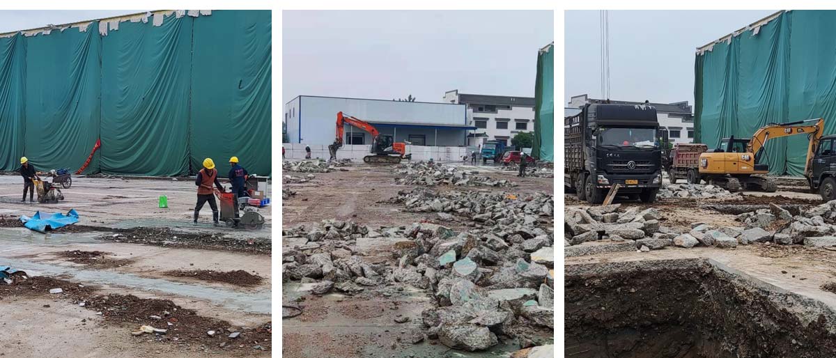 2021-4-21 如实香料年净选产能8000吨技改项目二期厂房土建工程施工现场:地基施工,场地石块清理。