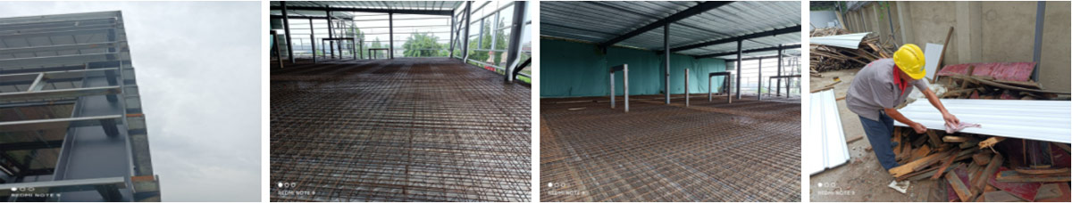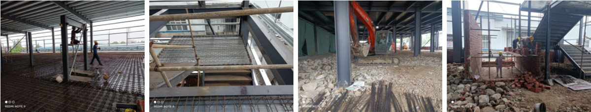 2021-7-16如实香料年净选产能8000吨技改项目土建工程二期施工现场:1.一段楼板钢筋绑扎完成80% 2.收边件安装完成15% 3.楼梯安装完成40% 4.墙檩安装完成75%