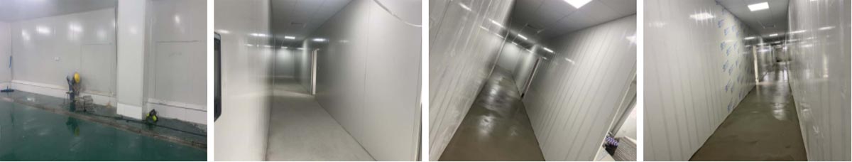 2021-9-8成都光合食品有限公司四期厂房装修现场:彩钢板施工