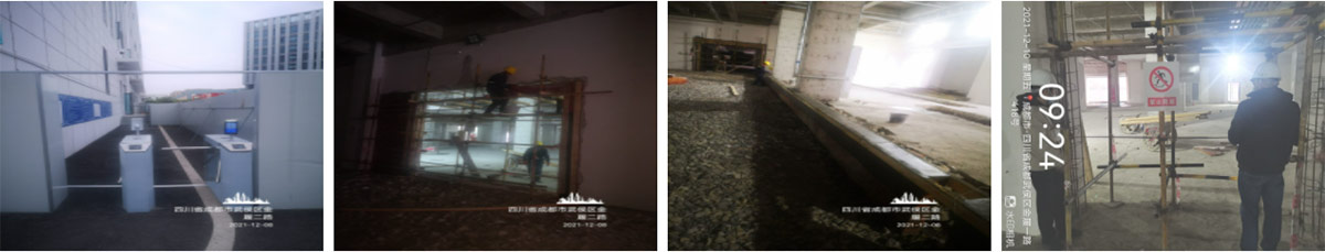 2021-12-8成都天府智慧大厨房科技有限责任公司中央厨房装修现场:智慧工地闸机系统、监控、排水沟、挡水墙