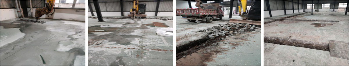 2021-11-27成都寻唐记食品有限公司改造二期车间施工现场:排水沟挖掘完成,建渣清运完成,新增门处土建墙剔除完成,排水管人工挖掘清理完成约10%。