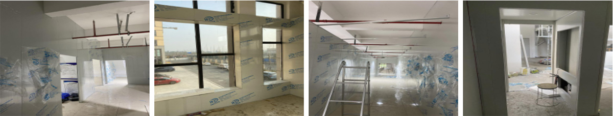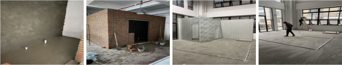 2021-12-7四川四季椒香食品有限公司厂房装修现场:土建施工,净化板材隔断开始施工